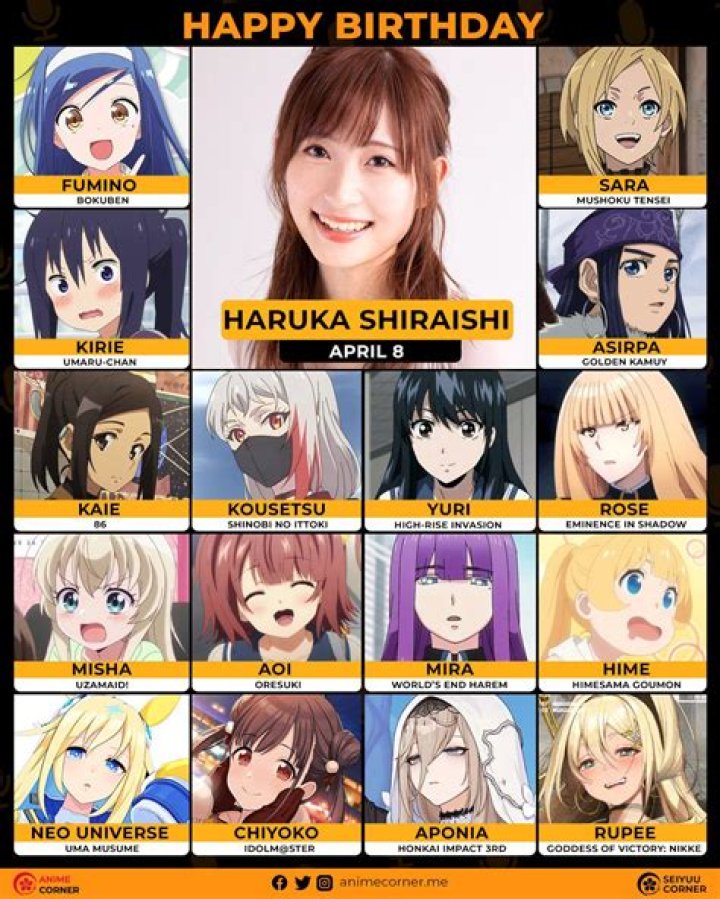 She's been represented by the Hirata Office and Toy's Factory. She posts anime-related content on her shiraharu48 Twitter account.