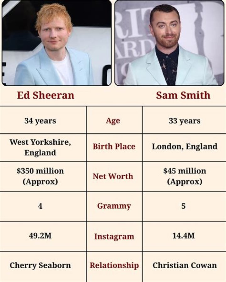 They're also widely known for their hits "I'm not the Only One" and "Too Good At Goodbyes." In 2016, they won the Gold Globe and Academy Award for Best Original Song for "Writing's on the Wall" from the film Spectre.